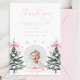 Send heartfelt thanks with this Winter Onederland thank you card featuring your baby’s photo surrounded by snow-covered trees and pink ribbons. A sweet and elegant keepsake for family and friends.