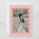 La Bright Squiggles Graduation Card est un moyen dynamique et élégant de partager vos nouvelles passionnantes. Sur le devant de cette carte accrocheuse se trouve une photo encadrée d'une frise ludique en orange rétro et encadrée par un arrière - plan rose vif. Ce design ludique et moderne met en valeur la personnalité et la joie de votre diplômé lors de cette occasion spéciale. Le texte personnalisable sur le devant comprend le nom du diplômé, l'école et l'année de remise des diplômes, assurant une touche personnalisée qui célèbre son voyage unique. Le dos de la carte offre un espace suffisant pour un message sincère, vous permettant d'express votre gratitude, de partager vos projets futurs ou simplement de transmettre votre enthousiasme à propos de cette étape importante. Célébrez votre réussite avec style avec la Bright Squiggles Graduation Card. C'est le mélange parfait de plaisir et de sophistication, assurant à votre faire-part se démarque et feuille une impression durable sur vos amis et votre famille.