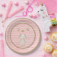 Pink Bunny Baby Girl Pastellstreifen Pappteller