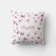 Dieses hübsche, rosa Schmetterlingskissen eignet sich perfekt für ein Mädchenzimmer. Es enthält ein Schmetterlingsmuster auf weißem Hintergrund und Text, den Sie mit Ihren eigenen Namen anpassen können. Die Vorlage kann im Listingeditor angepasst werden.