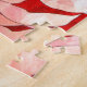 mit originellem Kunstdesign aus Aquarellmalerei von hellrosa und roter Kamelie-Blume. Dieses Design zeigt das Blumenmuster im großen, nahen Fokus, Makro-Stil und lässt die Blätter des botanischen Subjekts abstrakt erscheinen. Die Farben sind sehr hell, modern und lebendig.