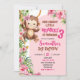 Pink Cheeky Little Monkey Savannah Theme Birthday Einladung