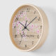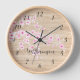 Horloge Monogramme en fleurs de cerisier rose Faux Wood
