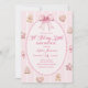 Soft pink Christmas a merry little baby shower invitation featuring watercolor gingerbread cookies, pink bow, striped background, and festive holiday details in warm pastel tones.