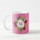 Moderne, dekorative PINK Weihnachtskranz Monogram COFFEE TASSE mit individualisierbarem Text - CELEBRATE JESUS vorne und ein MONOGRAM hinten - das Sie mit Ihren eigenen Details personalisieren können. Es gibt eine subtile Fliesenbotschaft, die sagt: CHRISTMAS BLESSINGS. Passende Weihnachtsgeschenke und Wohngestaltung sind in der CHRISTMAS WREATH Kollektion von Berean Designs erhältlich.