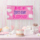 Fügen Sie Ihrem Geburtstagsleepover oder Slumber-Party die perfekte Touch mit einem coolen personalisierten Banner hinzu. Niedlich flauschige Wolken schweben auf einem wunderschönen rosa Hintergrund. Eine tolle Möglichkeit, Ihre Gäste zu beeindrucken.
