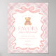 Pink Coquette Bow Bear Plaid Party Favors Sign Poster