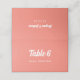 Pink Coral Minimalistische Script Hochzeit Platzkarte. Auf der Vorderseite kann man Tischnummer und Gästebame sowie Braut- und Bräutigamen und das Hochzeitstag sehen. Klicken Sie auf "Personalisieren Sie diese Vorlage" und dann auf "Bearbeiten mit dem Entwurfswerkzeug", um die Farben zu ändern oder Text hinzuzufügen/zu entfernen. Wenn Sie Hilfe benötigen, um Änderungen vorzunehmen, schreiben Sie bitte dem Designer.