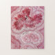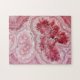 Rosa und weiße Kristalle und Bänder in dieser Fotografie eines Geodes.