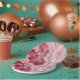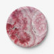 Rosa und weiße Kristalle und Bänder in dieser Fotografie eines Geodes.