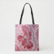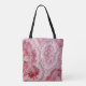 Rosa und weiße Kristalle und Bänder in dieser Fotografie eines Geodes.