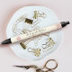 Present your best self to your clients, with this elegant, sophisticated, simple, and modern custom name pen. A sparkly, pink, rose gold cupcake, script handwritten typography and glitter drips overlay a pale, light gold background. Personalize with your full business name, phone number, or other info. Choice of black, blue, or red ink. Makes a chic, professional, and stylish statement every time you or your customers use it. Matching business cards are also available: