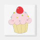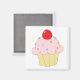Pink Cupcake quadratischer Magnet. Niedlicher Magnet hat rosa Kuchen mit bunten Sprinklen und eine Kirsche oben.