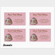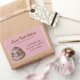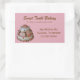 Hübsche Aufkleber für Backwaren in rosa Rechteck-Form, auf der verlassen Seite mit einer hübschen, kokken, kundenspezifischen Grafik. Der braune Text ist vollständig an die Bedürfnisse Ihres Unternehmens angepasst und kann so auf Anzug angepasst werden. Gute Werbung und eine schöne Touch für Ihre Bäckereiboxen.