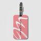 Ein einfaches und stilvolles rosa Tag mit ihrem Namen und Initialen im Stil eines Script-Schriftartes