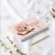 Ein schönes rosa Bild von Gerbera Daisies auf einem Buch mit einem Stift Bild. Text ist "WEDDING Gästebuch" und Namen der Braut und Bräutigam mit Hochzeitstag