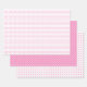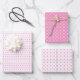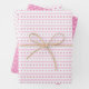 Dieses niedliche rosafarbene Verpackungspapier kommt in 3 Ausführungen: 1. Ein gestreiftes Design mit rosa Gänseblümchen und Herzen. 2. Ein abwechselndes Design mit weißen Farbtönen auf rosa Untergrund und rosa Farbtönen auf weißem Hintergrund. 3. Rosa Farbtöne und Punkte auf weißem Hintergrund.