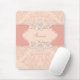 Das hübsche und mädchenhafte Design mit Mittelbannern und einem Label für Personalisierung, das mit gravierten Blumenbespannungen auf elegantem, rosa Damast geschmückt ist.
