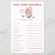 Niedliche Dinosaurier-Thema Mädchen Baby Dusche Baby Wort Rührei Karte mit der Abbildung eines rosa stegosaurus Schraffur aus einem Ei. Die Wortliste auf dieser Karte bezieht sich alle auf Babys und sie werden verdreht. Die Gäste werden konkurrieren, die sie alle zuerst auspressen können! ANTASTATUR: 1. Kindersitz 2. Milch 3. Laufgitter 4. Schnuller 5. Diaper 6. Schaukelstuhl 7. Kinderzimmer 8. Babymonitor 9. Sattel 10. Formel 11. Gummiklemme 12. Rolle.
