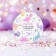 Rosa Dinosaurier Geburtstagsparty Gefallen Klassischer Rundaufkleber Alle Designs sind © PIXEL PERFECTION PARTY LTD