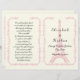 Pink Eiffel Tower Paris destination programme de mariage plié. Le programme de mariage parfait pour votre mariage parisien est doté de la Tour Eiffel au centre et d'une frontière damassée rose. Choisissez seulement le papier de valeur et pliez-le en deux.