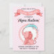Ein niedlich rosa Elefant duscht sich, um Ihnen zu helfen, Ihre Babydusche zu feiern. Rosa Polka Punkte und ein Banner, das Ihr Baby ankündigt.