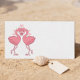 Welcome guests with charming flamingo décor! This elegant escort card features a delightful flamingo couple sharing a kiss beneath floating hearts, complete with bold pink feathers and soft pink typography on a crisp white background. It’s perfect for a tropical wedding, beach ceremony, or Hawaiian luau, adding playful sophistication to every table setting. Whether you're hosting an engagement party, a rehearsal dinner, or the big day itself, this design infuses romance, personality, and tropical style into your seating. It’s a sweet way to make guests feel celebrated and connected.