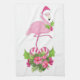 Pink Flamingo in Weihnachtsmannmütze Whimsisches W Geschirrtuch