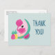 Ein Party danken Ihnen postcard eine niedliche Abbildung eines rosa Flamingo mit einigen Wassermelonen und Ananas. Rosa und grüne Farbe. Summerisch und tropisch. Der Hintergrund ist eine hellgrüne Farbe mit weißen Polka-Punkten. Personalisierte Meldung auf der Rückseite.