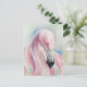 Diese Postkarte ist mit einem hübschen rosa Flamingo in sanften Pastellfarben mit grünen Akzenten gestaltet.