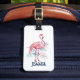 Elevate your travel experience with a stunning pink flamingo and tropical leaf watercolor illustration on a sleek white luggage tag. Personalize it with customizable text to make it uniquely yours. Bring a touch of tropical vibes to your exotic destination with this eye-catching accessory.