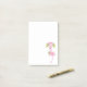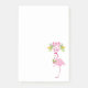Whimsical tropische Weihnachten post-it notiert. Ein extravagant rosa Flamingo mit einem Bein erhob sich. Tragen Sie eine rosa Weihnachtsmannmütze und etwas saisonale heilige. Ein Blumenstrauß mit Bonbons über ihrem Kopf.