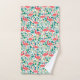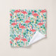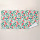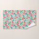 Pink flamingos, tropical leaves, and flowers in a seamless pattern border on a white background.