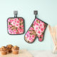 Pink Floral Bloom Pattern Ofenhandschuh & Topflappen-Set