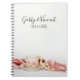Erstellen Sie ein hübsches Gästebuch oder ein Beratungsbuch für die Braut und den Bräutigam, wenn Sie den eleganten Pink Floral Tea Cup mit Pearls Wedding Spiral Notebook personalisieren. Dieses edle, auf den Gartentee zugeschnittene Buch mit einem kleinen Buch zeigt ein Foto einer Blumentasse und Untertasse mit Perlhalskette, rosa Satinensatin und weißer Damast-Tischdecke.