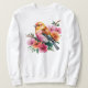 Watercolor painting features a small bird perched amongst blossoms. Get this artwork with products.