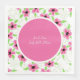 Hübsche rosa, grüne und weiße Blume gemusterte Hochzeitsnadel. Der Text kann auf jede Farbe oder Nachricht personalisiert werden. Der Text ist ebenfalls abnehmbar. Der rosa Kreis kann auch in jede Farbe geändert werden, um sich mit Ihrer Hochzeitsdekoration abzustimmen. Personalisieren Sie mit den Namen der Braut und der Zeltstuben, und Hochzeitstag, um individuelle Servietten zu erstellen.