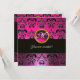 PINK FUCHSIA BLACK DAMASK MONOGRAM, Amethyste Einladung