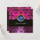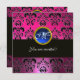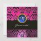 PINK FUCHSIA BLACK DAMASK MONOGRAM, blauer Saphir Einladung