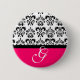 PINK FUCHSIA SCHWARZ-WEISS DAMASK WEDING MONOGRAM BUTTON