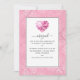 Herzförmige rosafarbene Edelsteine zum Geburtstag einladen mit einem rosa, Vintagen Damast-Hintergrund und eleganter Handschrift Typografie.