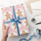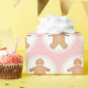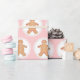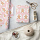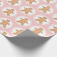 Dieses Packpapier zeigt ein Muster von Pfefferkuchen auf einem rosa Hintergrund mit weißen Polka-Punkten.
