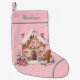 Pink Gingerbread Haus Polka Dot Custom Kleiner Weihnachtsweih Strumpf. Bereit, personalisiert zu sein!