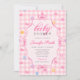Pink Gingham Floral Bow Baby Shower Invitation