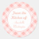 Weich rosa Gingham dekoriert diese Küchenaufkleber. Ändern Sie den Namen, um diese Aufkleber zu personalisieren. Verwenden Sie diese Stilaufkleber für Geschenke, Backen, etc....Das Design stammt aus der Originalkunst.