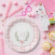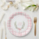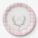 Eine klassische Rosa Gingham Wasserfarbe mit einem Lorbeerfass Wappen mit Bogen für die erste Monogramm.