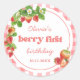 Pink Gingham Strawberry Birthday Runder Aufkleber