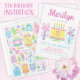 5. Geburtstag gelb und rosa Kuchen mit der Nummer 5 auf dem Kuchen. Die Nummer 5 wird zu Kuchen hinzugefügt und präsentiert sich während des gesamten Designs. Passen Sie den Namen in einem lässigen rosa Skript an, um das Geburtstagsmädchen zu markieren.
