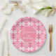 Pink Girly Puzzle Stücke Papier Teller. Geburtstagsfeier mit einem Schatten von rosa Puzzleteilen.