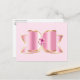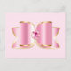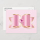 Eine Postkarte mit einem glitzernden glänzenden Bogen mit goldener Kontur und einem facettierten rosa Edelstein in der Mitte. Die luxuriöse Glasur von Feminine.